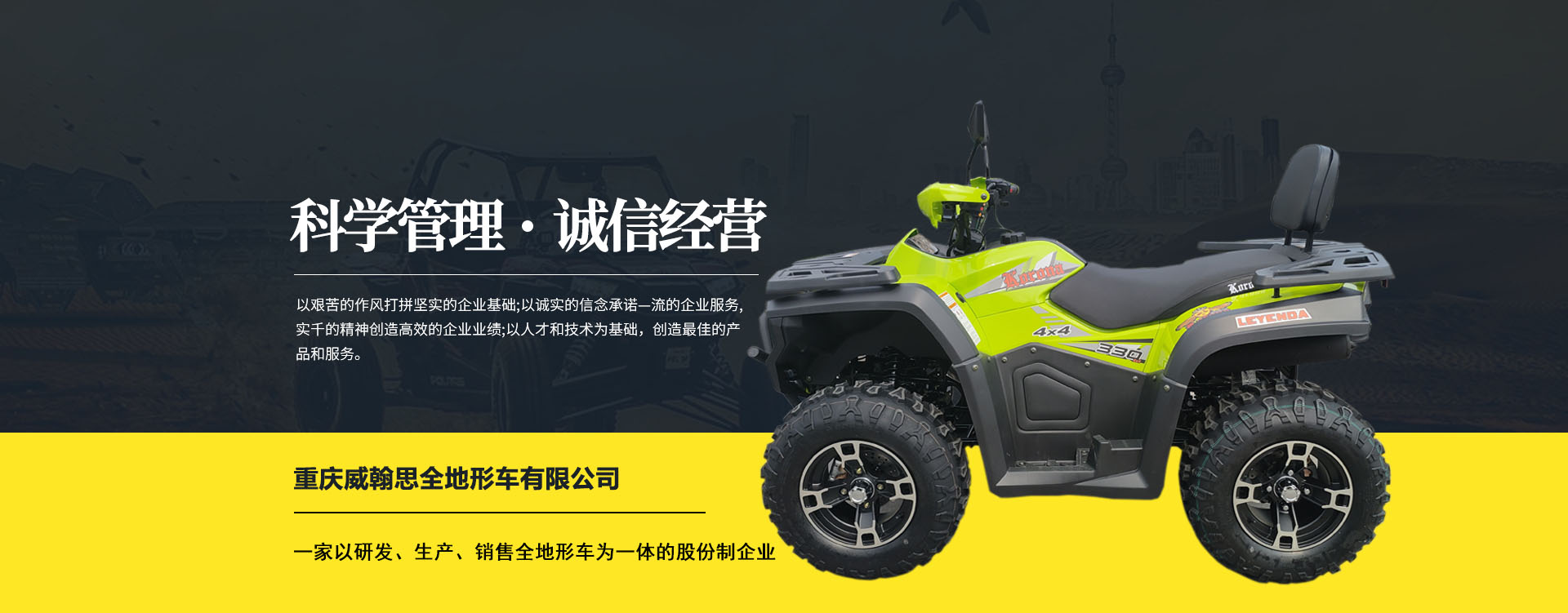 重慶威翰思全地形車有限公司成立于2016年9月,一家以研發、生產、銷售全地形車為一體的股份制企業。公司銷售額超過5000萬。現有專業市場售后服務團隊。公司秉承“敬業、超越、活力、用戶至上”的企業精神,“以人為本,合作共贏;”的核心價值觀,“嚴格管理創優質、名牌戰略拓市場”的質量方針,使公司一步步邁上新的臺階。公司與重慶航天巴山摩托車制造公司達成戰略合作協議。共同出資致力于沙灘車旅游市場產品研發,項自運營指導,市場維護等全方位市場拓展。重慶航天巴山摩托車制造公司授權;重慶威翰思全地形車有限公司為中國區唯─戰略合作伙伴。
